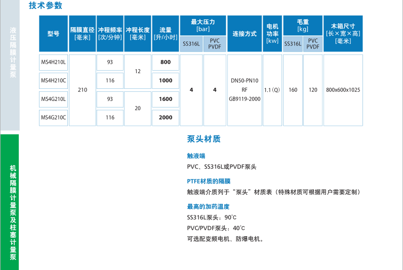 MS4系列泵是一種機械隔膜計量泵,具有彈簧復位機械裝置和鑄鐵外殼。